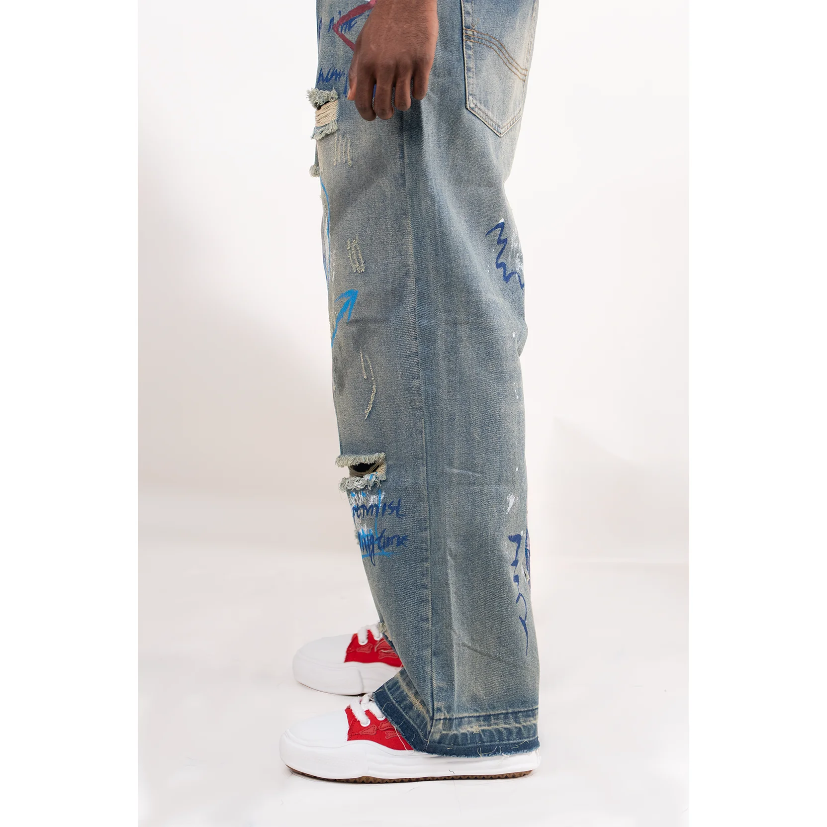 -70%BAGGY BLUE SPRAY PAINT WATSON DENIM PANTS—